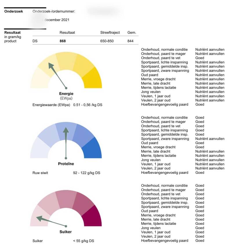 Laatst zei iemand: “Je kunt aan de analyse meteen zien of het hooi of voordroog is, dat verschil is zó duidelijk.”Die proef op de som gaan we eens nemen. De komende tijd zal ik wat analyses plaatsen van ruwvoer en dan mogen jullie raden.